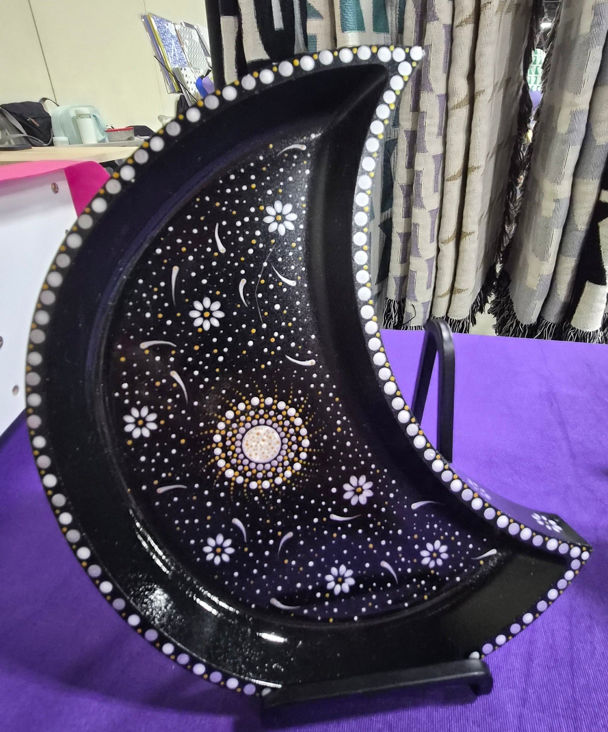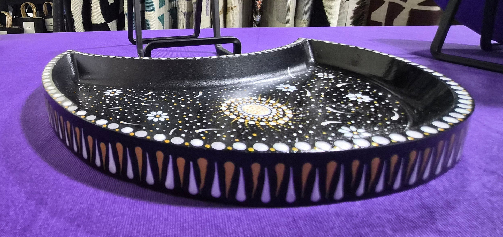 - Metallic acrylic paint is hand painted in a beautiful mandala dotting pattern