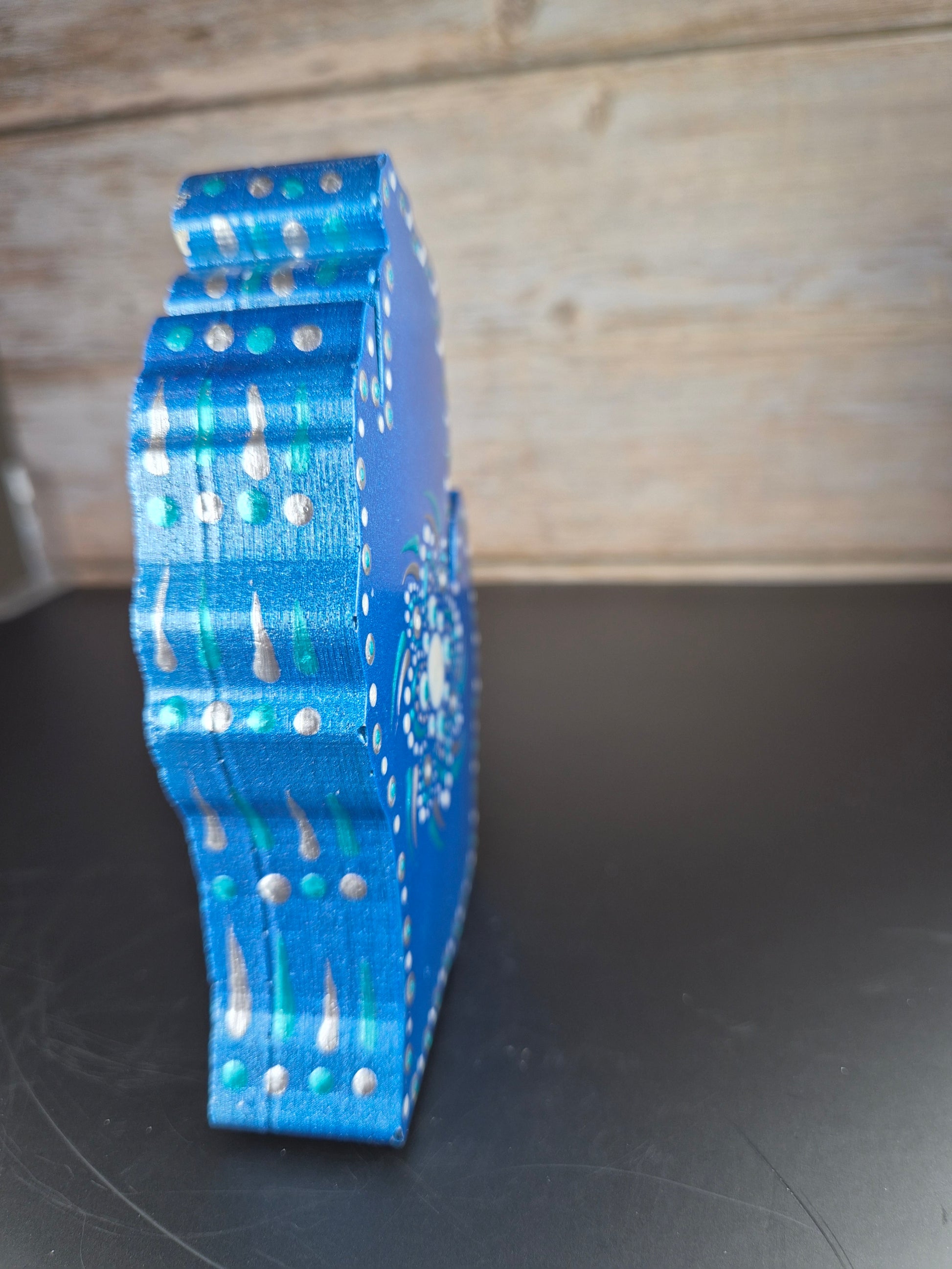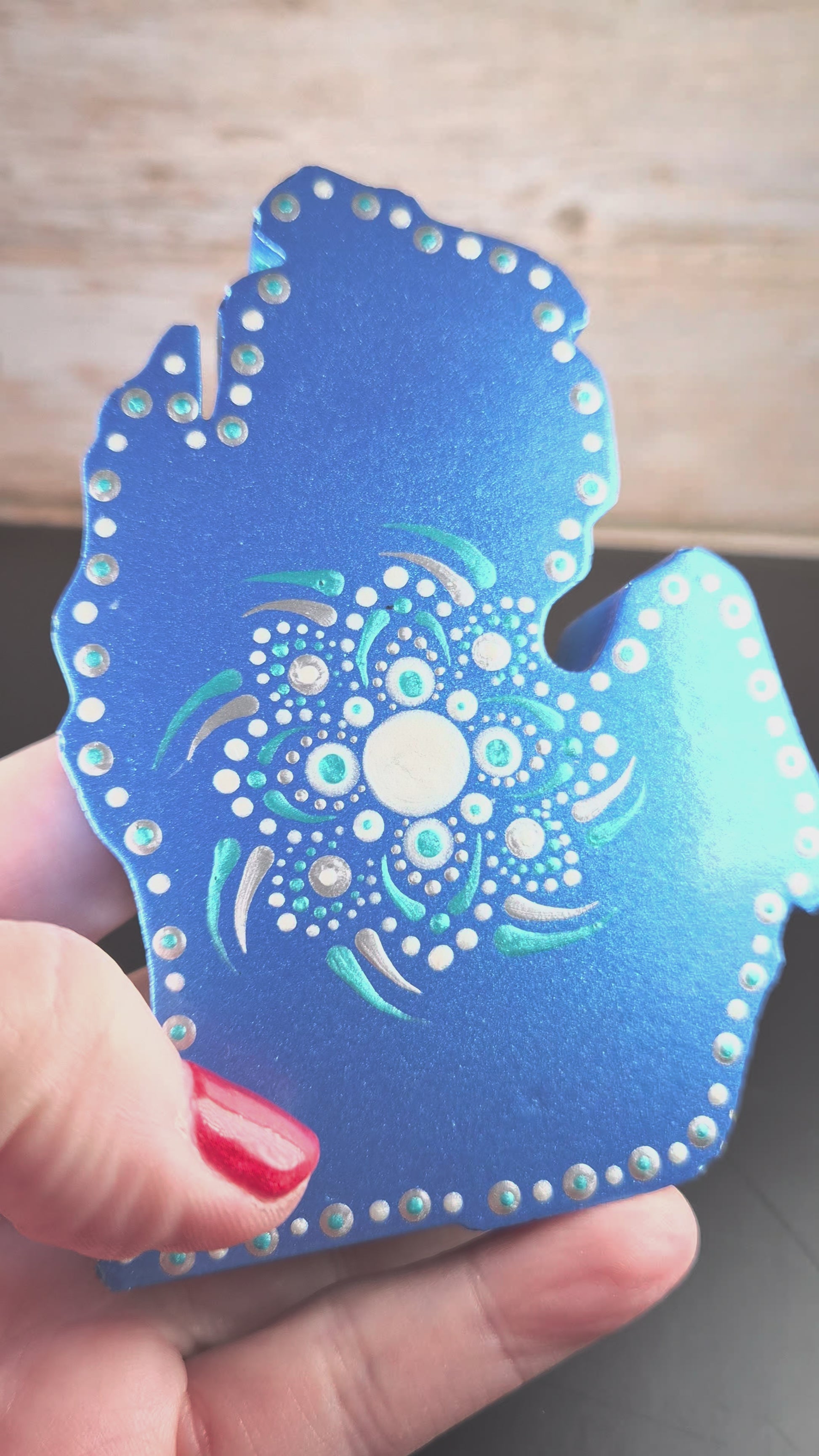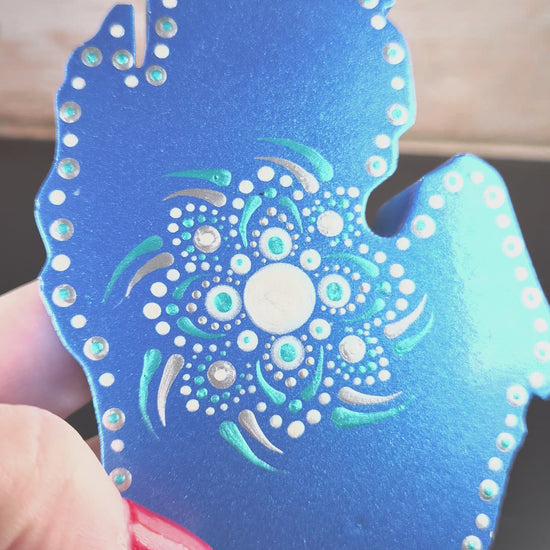 Add a splash of elegance with this Blue & Teal Michigan Hand. Handcrafted and shimmering with metallic tones, this piece blends vibrant blue and teal, reminding you of the beauty of the Great Lakes.