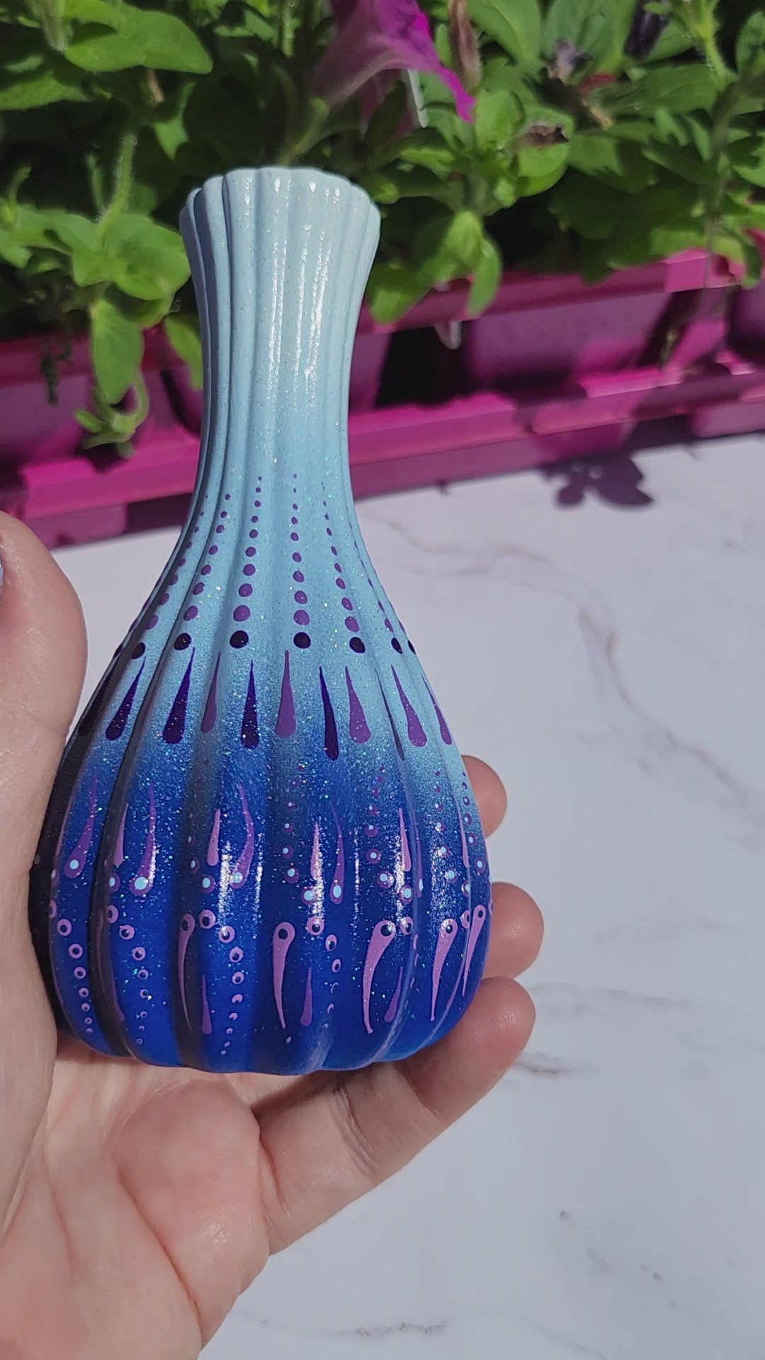 - Purple acrylic paint is hand painted in a beautiful mandala dotting pattern