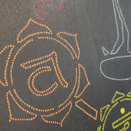 All products are hand painted and protected by a gloss varnish for protection, but are made for indoor use only. I try to take the best pictures of each product so you can see the distinct characteristics and reveal the true nature of what you'll be receiving. Each piece is designed by me personally and any "happy accidents" are blended into the design's finished piece.